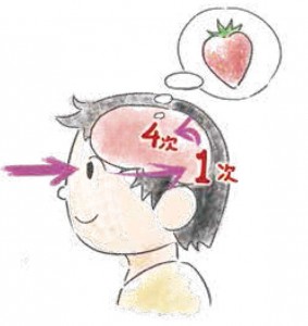 そして、目から入った情報は神経を通り、後頭部付近にある「後頭葉」に伝えられます。この後頭葉では、まず一次視覚野で、主に奥行きや高さなど、モノの形を処理します。その後、一次視覚野から他の視覚野を通過し、四次視覚野に向かいます。ここでは伝えられた情報から「色」を処理するため、特定の色にだけ反応する細胞があり、それぞれの色に変換され、私たちは最終的に、「色」を認識しています。つまり、たとえ目に問題がなくとも、病気や事故で、脳の一次視覚野に損傷があれば、部分的に見えなくなったり、四次視覚野に損傷があれば、人は色を認識できなくなります。色は「脳」で見ていると、言っても良いでしょう。